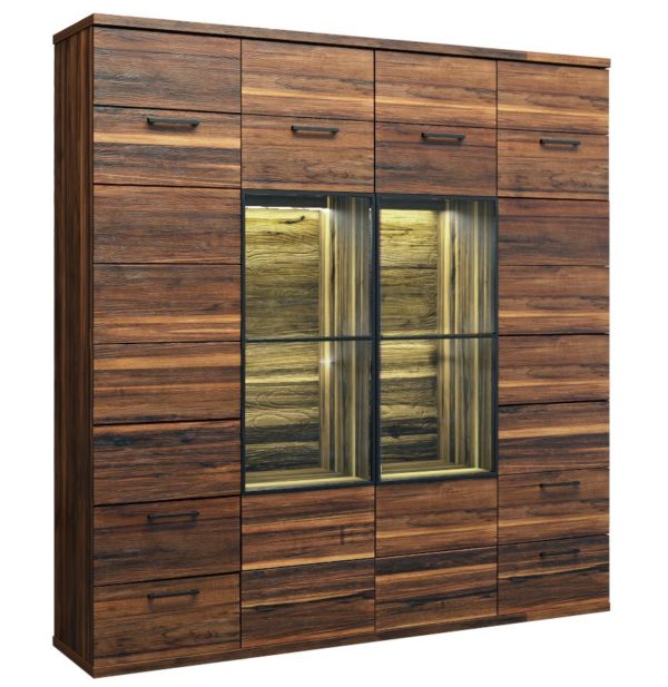 Выполненная из массива дерева коллекция сознательно соединяет простоту современной формы с декоративностью текстуры. Новаторский эффект пространственной структуры достигается благодаря осторожному шлифованию задних стенок экспозиционных пространств и глубокому полированию передних панелей.