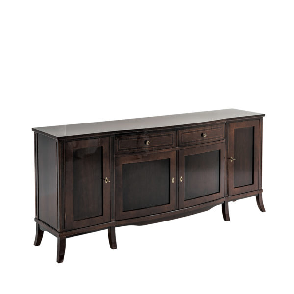 Коллекция мебели PINOT NOIR из благородного орехового дерева предназначена для любителей современной классики. Это эксклюзивный комплект деревянной корпусной мебели, а также уникальных столов и стульев с глянцевым покрытием. Коллекция отличается также уникальной обивкой и стильной фурнитурой. Фасады части выдвижных ящиков украшены ручной инкрустацией, выполненной из вишневого, орехового и ольхового дерева. Все ящики оснащены высококачественными направляющими с тормозом и системой бесшумного закрытия. Несомненным преимуществом коллекции является уникальный эллиптический складной стол, который в разложенном виде достигает внушительного размера. Благодаря наличию в нем синхронных направляющих, рассчитанных на большую нагрузку, это не только красивый, но и чрезвычайно стабильный предмет мебели. Стол поддерживают две колонны, выточенные из массива дерева.