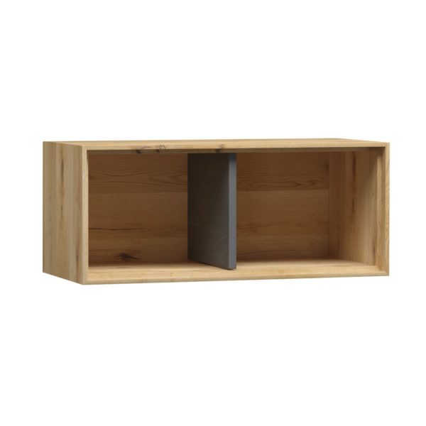 Мебель из коллекции Woodline прекрасно использует естественную красоту дикого дубового дерева. Глубокая чистка задних стен выставочного пространства четко раскрывает уникальную структуру благородного сырья. В случае элементов из антрацита — матовый лак поглощает свет, что позволяет точно смотреть на структуру. Мы можем легко видеть пористость сосудов, рисование зерна или узлов. Сочетание элементов натурального цвета с антрацитными фронтами подчеркивает современный характер мебели.