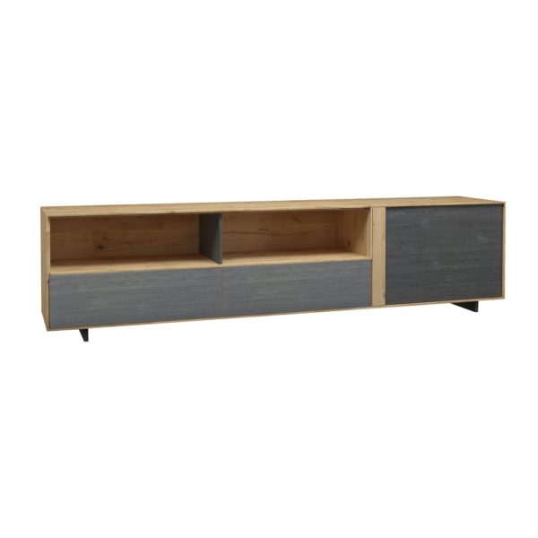 Мебель из коллекции Woodline прекрасно использует естественную красоту дикого дубового дерева. Глубокая чистка задних стен выставочного пространства четко раскрывает уникальную структуру благородного сырья. В случае элементов из антрацита — матовый лак поглощает свет, что позволяет точно смотреть на структуру. Мы можем легко видеть пористость сосудов, рисование зерна или узлов. Сочетание элементов натурального цвета с антрацитными фронтами подчеркивает современный характер мебели.